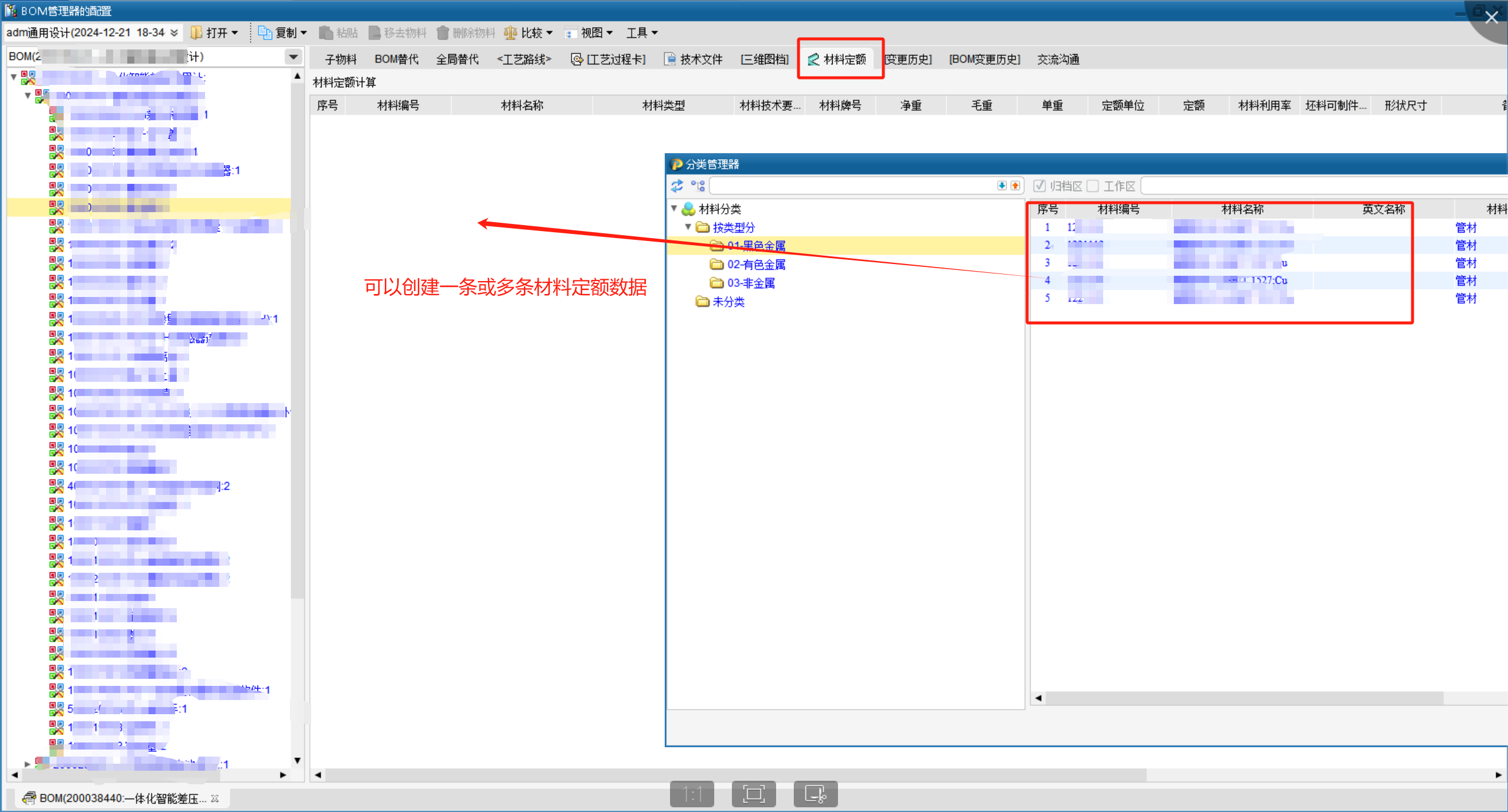 2.将原PLM使用的材料在思普PLM中创建标准材料库,材料定额时可直接调取材料库中的材料。