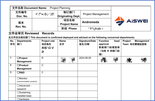 Through the implementation of Aiswei’s SIPM/PLM project, standardize product development processes; standardize the management of input, output, review, and other process documents (all documents should be complete, systematically archived for easy access); ensure that all development processes are recordable, traceable, and enhance project management capabilities, making processes controllable. Implement hierarchical project management with different levels of projects having different hierarchical control processes, providing relative flexibility.