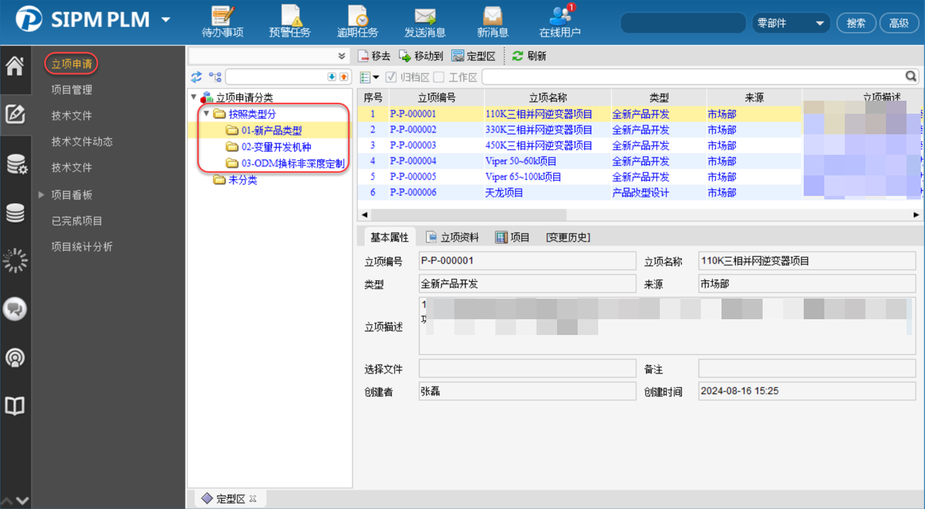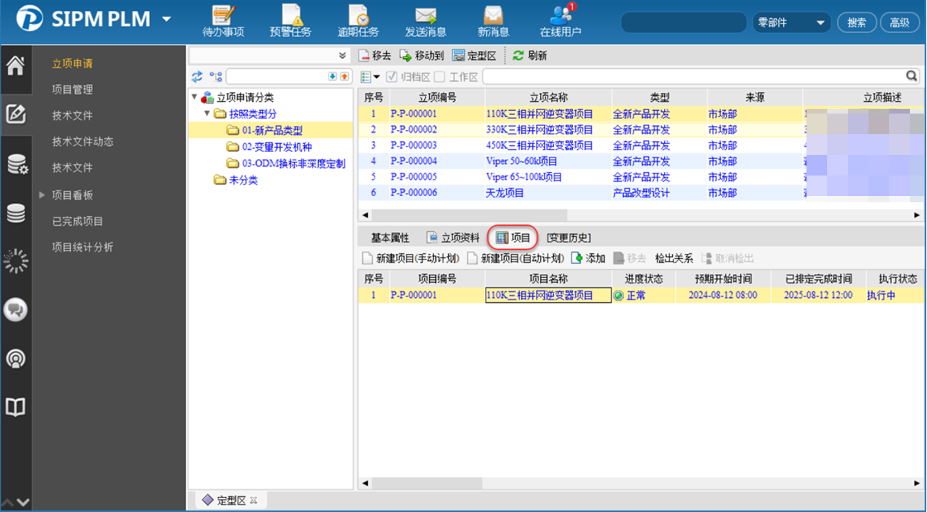After implementing SIPM/PLM management, to emphasize the seriousness and formality of project initiation, initiation applications are managed as dedicated objects within the PLM system. The system can receive approved initiation applications from the BPM system via interfaces. Within PLM, these applications are categorized for clearer and more logical management. Furthermore, initiation applications are now systematically associated with relevant documents and projects, significantly enhancing coordination and interconnectivity. This integrated approach has substantially improved both the efficiency and control of initiation application management.