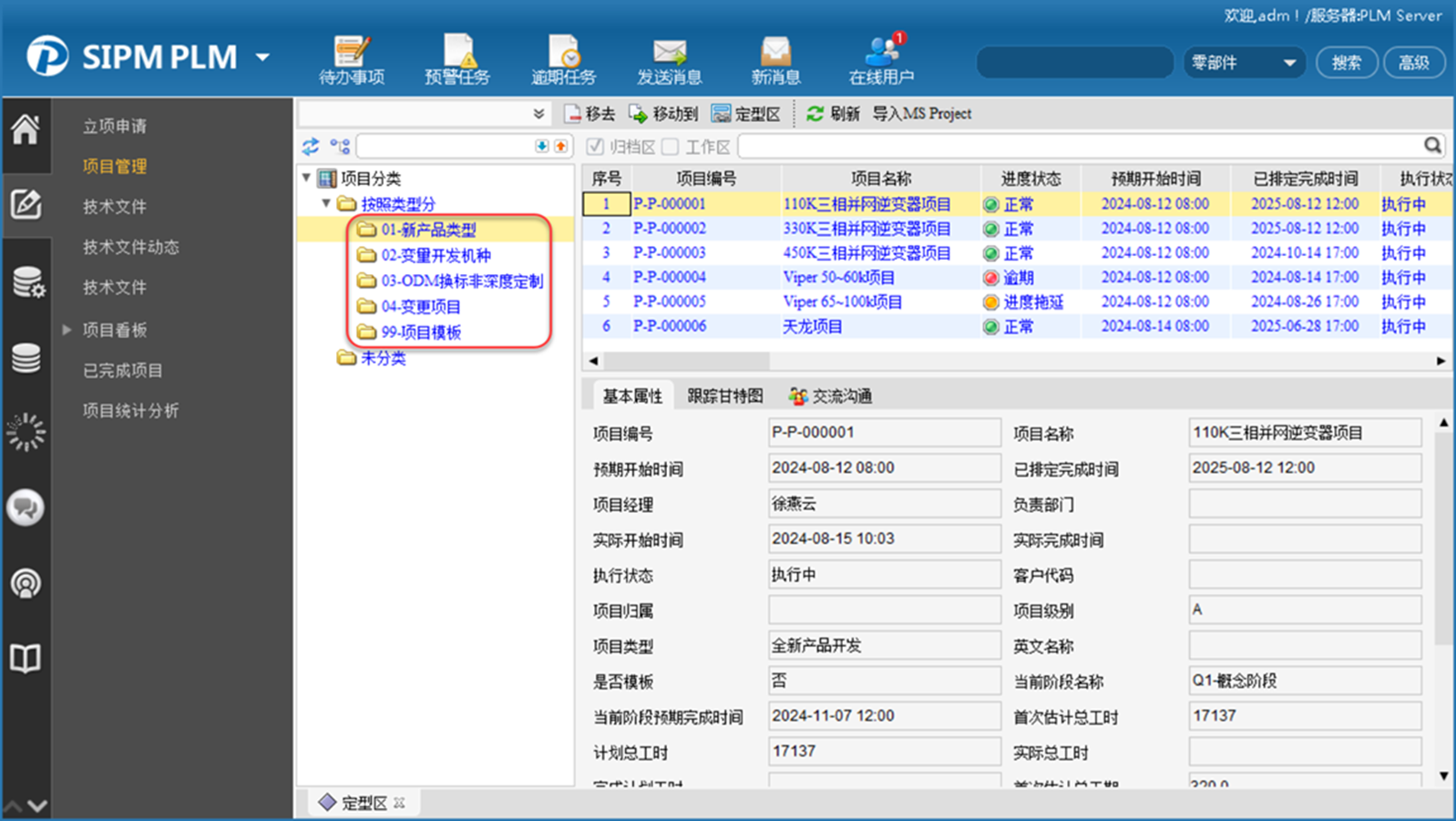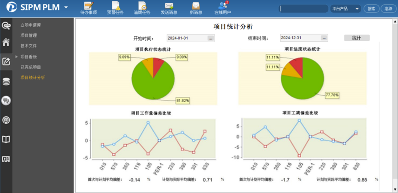 After implementing SIPM/PLM management, a unified project management platform was established, with all projects centrally managed within the PLM system. Project planning is now streamlined by replicating standardized project templates, enabling engineers to quickly complete project setup. Completeness of project deliverables is ensured through output completeness checks—such as task-based output constraints, stage-specific data outputs, and overall project data outputs. Furthermore, differentiated change management processes are defined based on project types, enabling tiered control of project changes, with full traceability maintained through change history records.