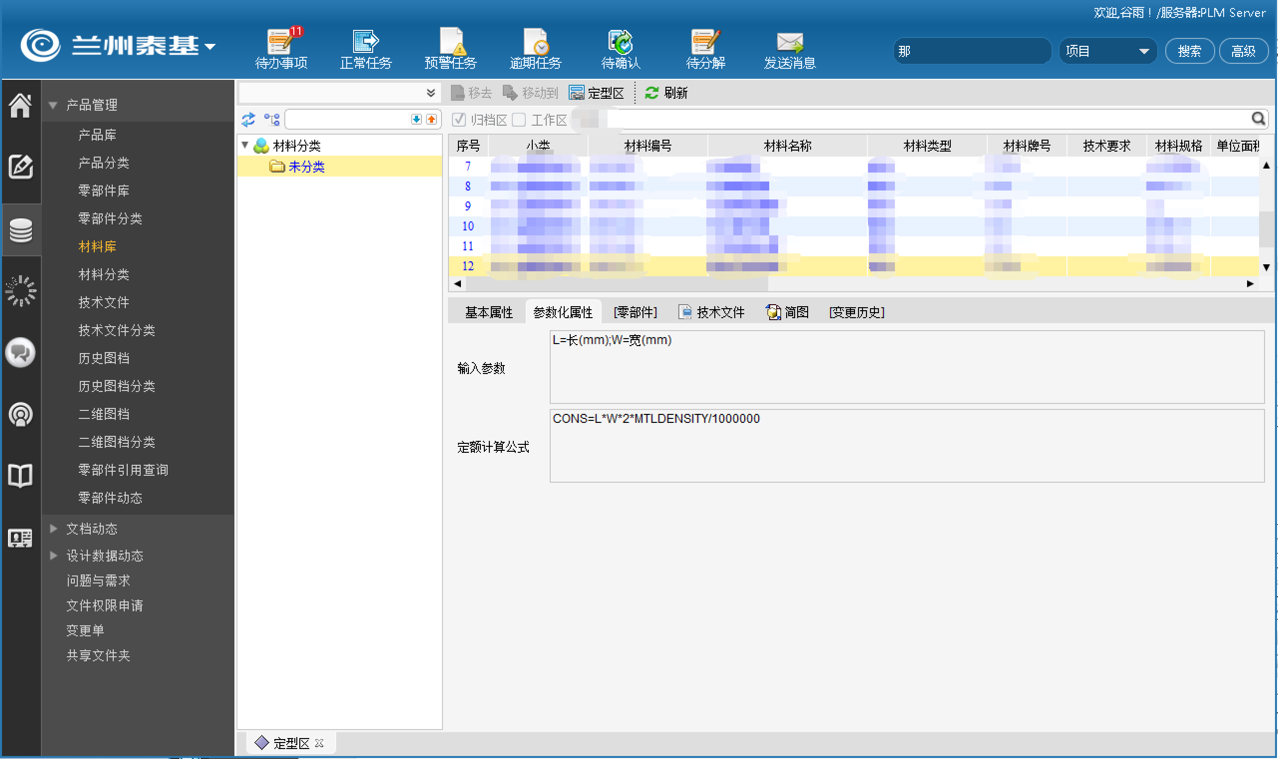 在PLM系统中维护原材料库,根据原材料属性维护对应内容,并根据材料特性,编制定额参数及计算公式。需要进行定额计算时,直接通过定额功能选择对应的原材料,系统根据定义的参数及公式自动计算定额数量,提高了工艺定额的效率。最终同步SAP时,按照系统逻辑将设计BOM和定额内容重新组装为完成的BOM结构,进行数据同步。