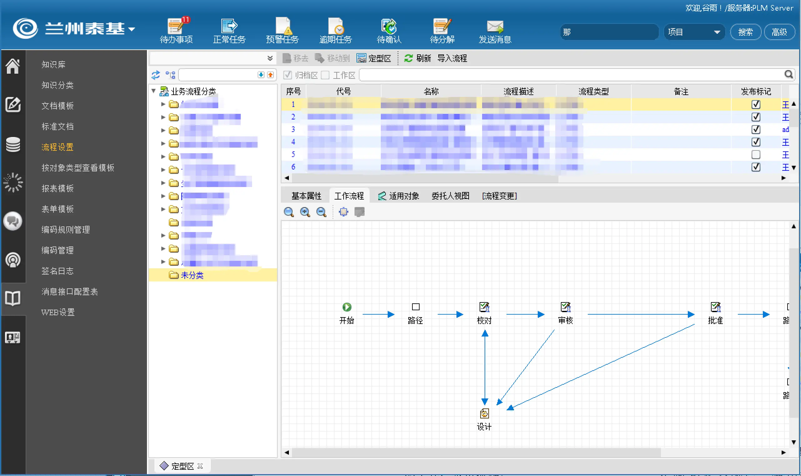 针对PLM系统的不同对象,例如零部件、技术文档、图纸、模型等建立对应的签审流程并在签审节点中绑定固定的签审人员,方便设计人员快速选择签审流程,并且以可视化的形式进行显示。