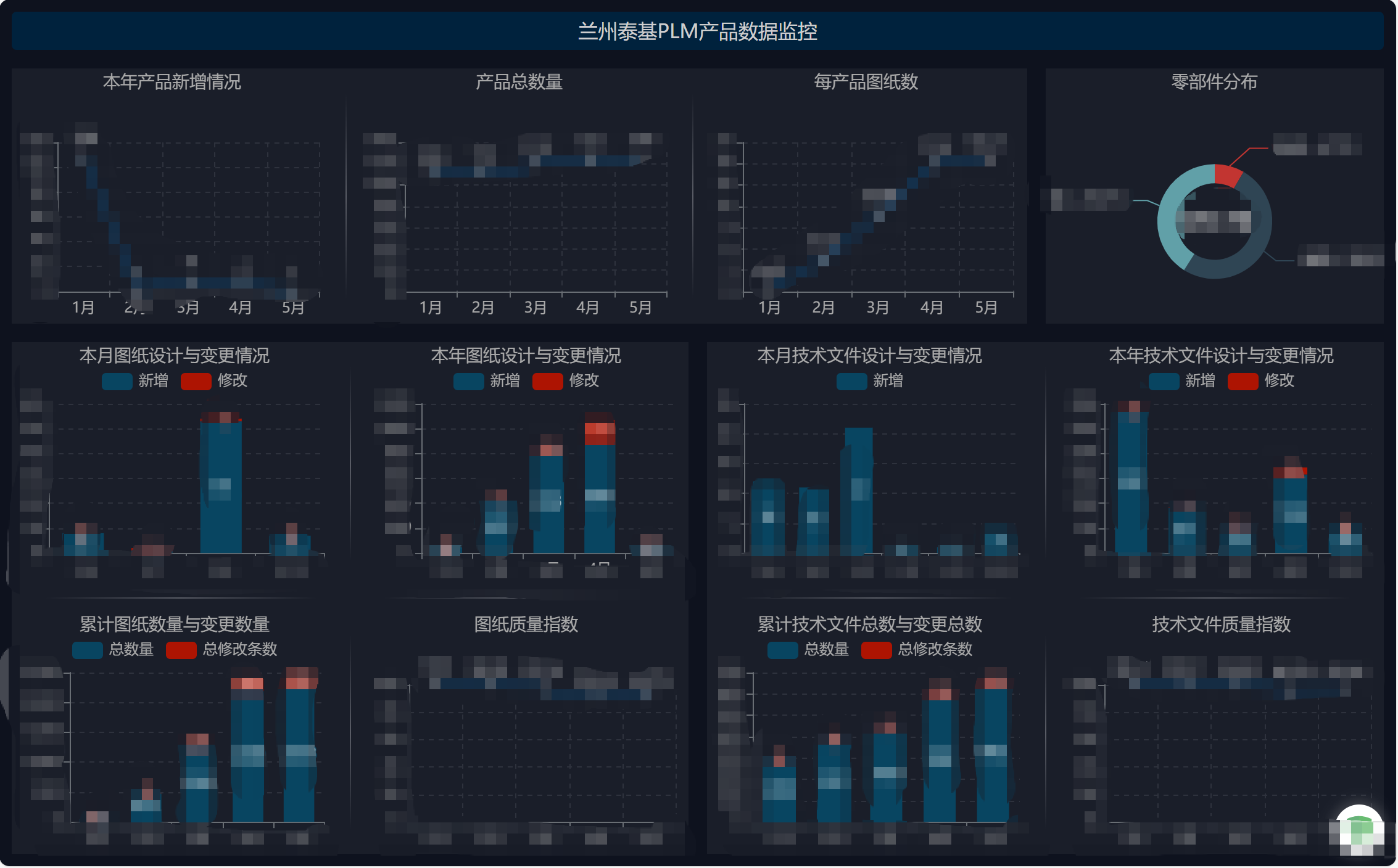 系统根据新增及变更两种状态,分别查询不同类别物料在不同年份、月份新增变更,方便研发管理人员直观的查询当年及对应月份下研发部门产出的零部件,作为管理研发工作的数据参考。