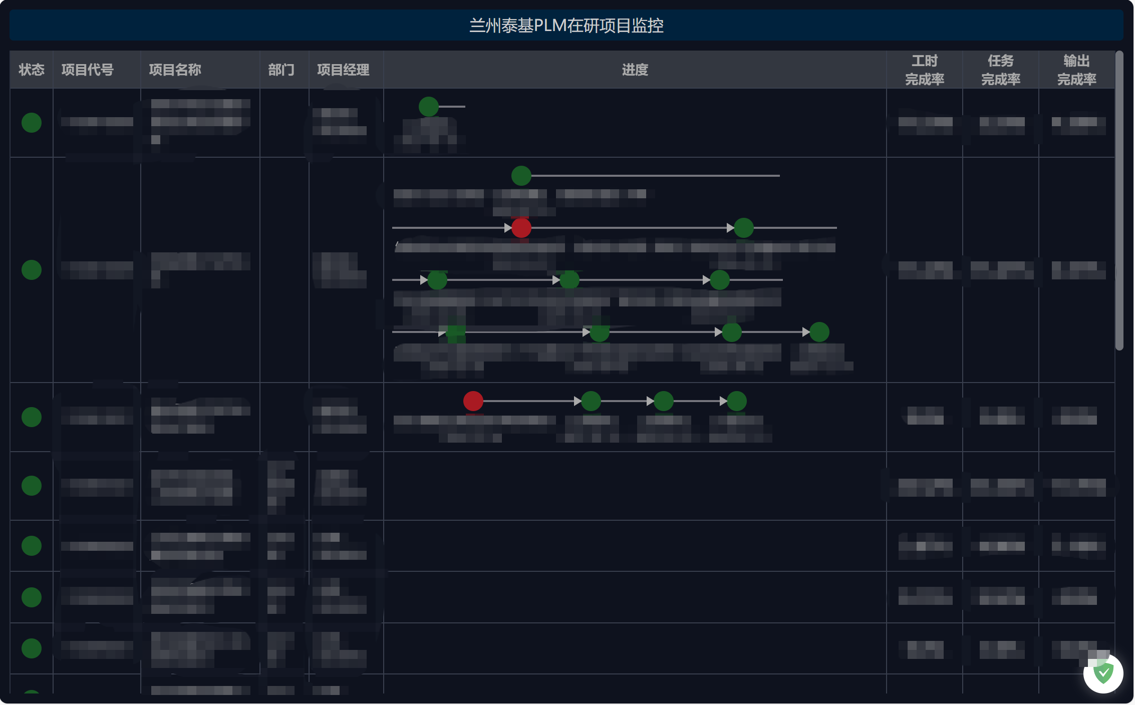 为解决研发过程中部分间协同问题,梳理泰基项目管理流程,根据泰基实际业务定制符合泰基的项目管理模板。通过引入PLM系统的项目模块,将项目模板进行固化,规范项目研发过程,并在项目执行过程中将进度与需要输出的数据进行强制绑定,明确进度与输出关系,使长周期项目管理过程更加清晰、高效。