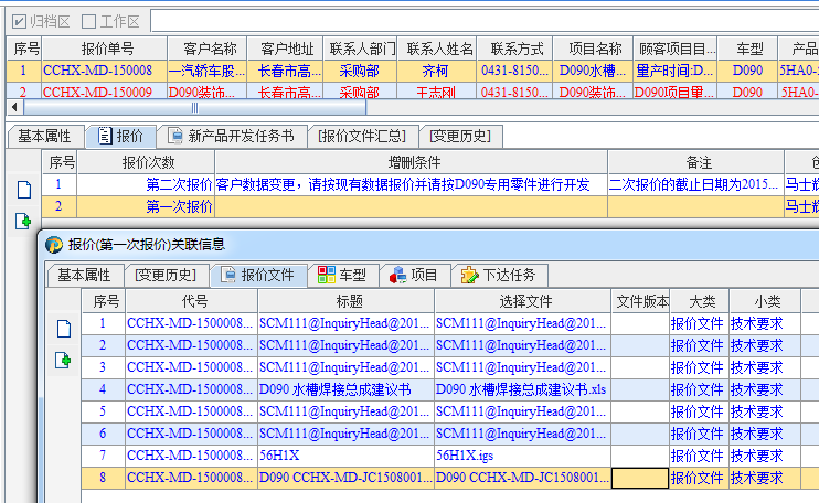 通过报价管理有效的解决了同一个车型对不同客户报价过程的管理,可以快速的查询报价资料,可迅速直观的追溯历史报价记录,可有效地管理多次询价及报价;通过报价管理以及系统中的各种成本数据可快速、准确的生成产品的成本测算表;报价管理与项目管理完美的结合,使PLM系统形成完整的业务数据流;