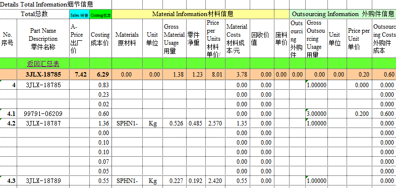 图5 结构化的成本数据