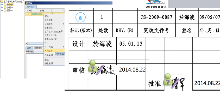 所有工程图经过思普可视化的签审流程后,实现了PDF电子签名: