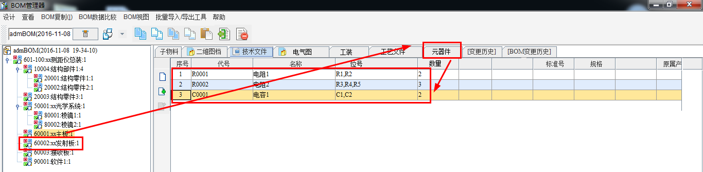 除结构图外,电气图、板卡上的元器件俱进行了有机一体化管理: