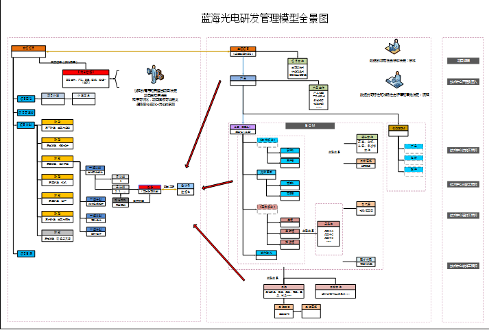 思普实施团队的优势在于以娴熟的业内实施经验和业务把握度为基础,通过调研和蓝图设计,为蓝海光电打造一个精准、有机的产品研发管理模型,下图是思普团队将产品开发从立项—方案—详细设计—工艺开发—生产—转批的全过程管理全景模型图。