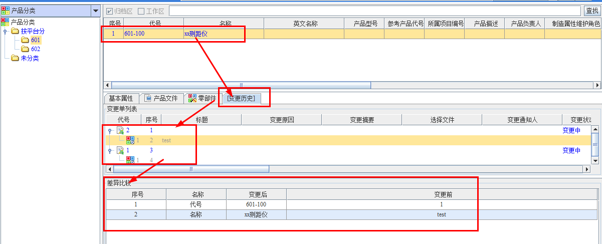 思普对待数据的原则:PLM有多少数据入库,就有多少数据可能涉及到变更,所有变更均需有依据、有权限。PLM中数据变更一般遵循如检出——修改——重新审核——归档流程,同时在系统中留下变更历史,如下: