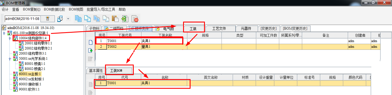 工装BOM管理: