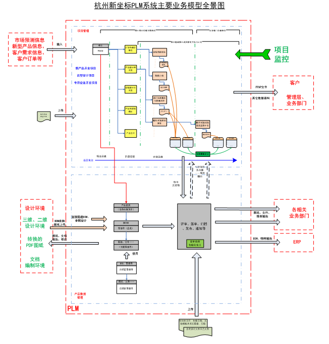 1、 梳理了研发业务流程,确立了用PLM系统项目管理工具对整个产品研发设计过程进行管控,产品数据在公司内的管理部门间全部实现电子化传递(数据上传、组织管理、查询使用、下载输出等),为此,设定了严谨的业务管理模型