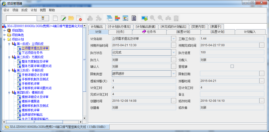 利用SIPM/PLM系统强大的项目管理功能,将晖速的研发流程通过系统进行固化,所有计划项的输出物在计划输出中进行固化,保证了产品开发按体系要求进行控制,确保产品的质量。