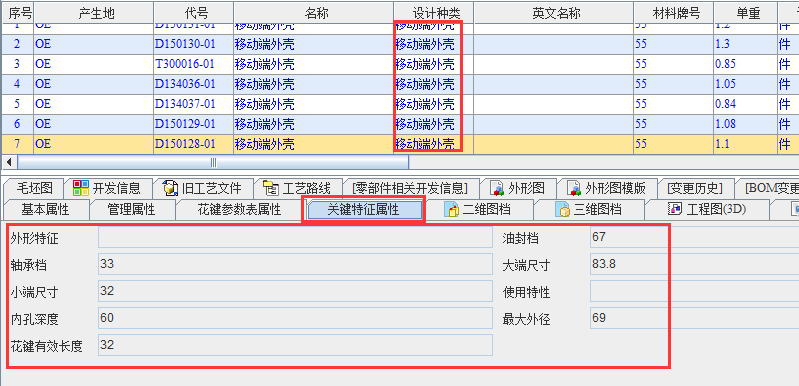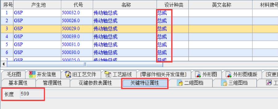 (设计种类为总成的关键特征属性)