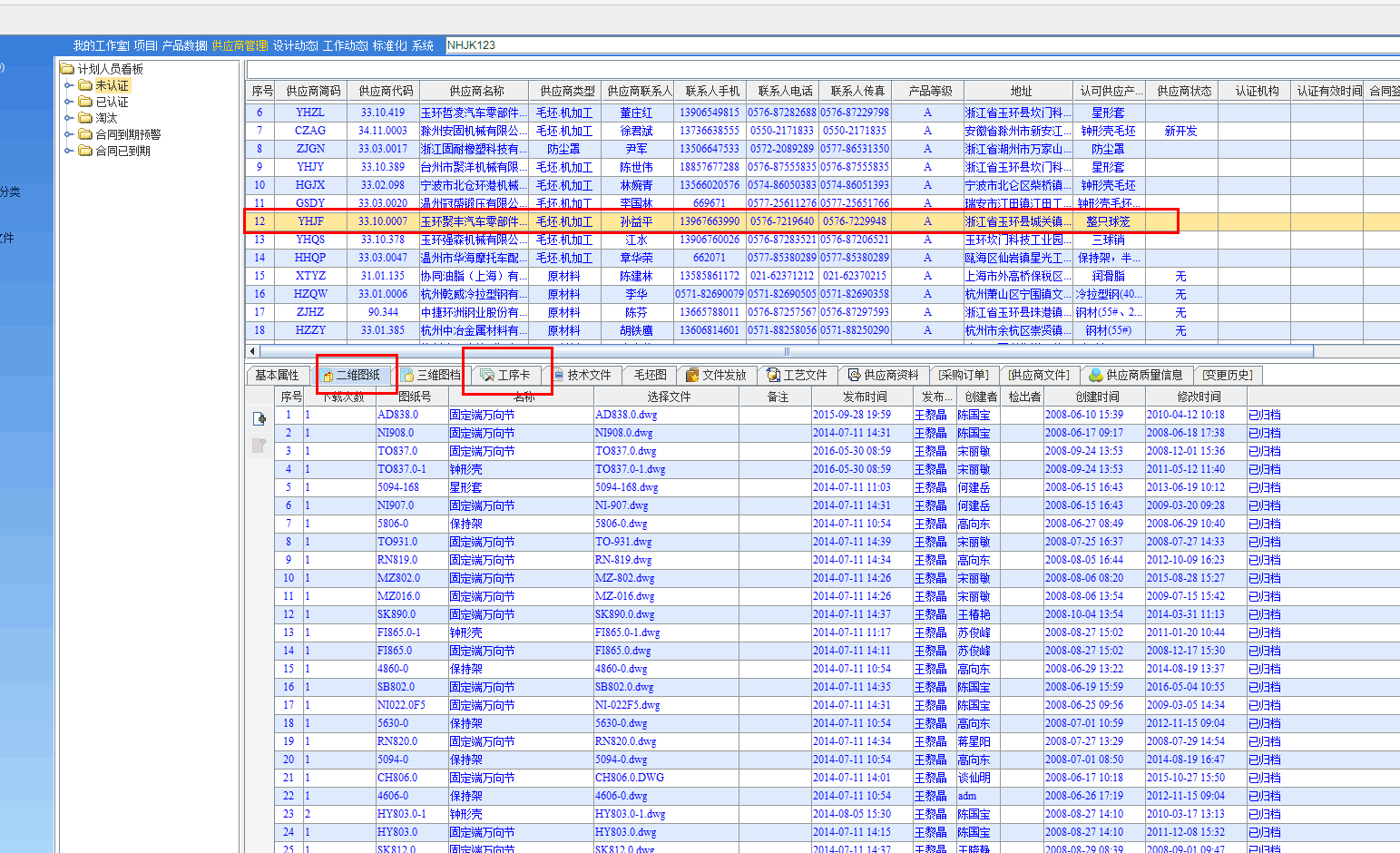 在供应商关联的二维图档/工序卡添加数据,流程归档后,供应商收到图纸/工艺推送。