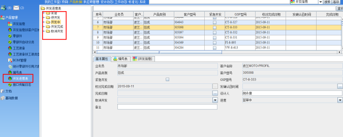 市场部根据市场调研或客户反馈情况,在PLM中维护开发信息表,填写基本样品信息,归档后自动生成开发任务并形成开发进度表,技术部接到开发任务,按照开发进度使用浩辰CAD进行零部件的开发。