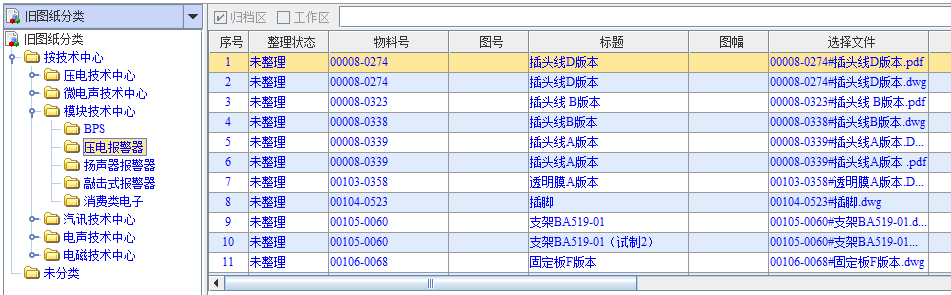 旧图纸是企业标准化道路上的障碍,为了系统快速切换上线,思普将旧图纸(非标准模版图纸或扫描版图纸)先在系统中以文件形式管理起来,达到旧图纸可查的目标,然后客户对旧图纸标准化进行任务分解,以此为目标,逐步将旧图纸转化为标准图纸,最终消灭。