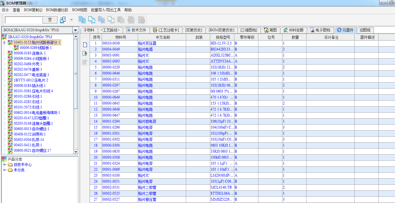 汉得利SIPM/PLM项目采用三维设计软件接口,直接从图纸中读取设计数据以构建结构BOM视图,使得设计图纸与数据保持完全一致。通过接口检索功能,使得参照设计效率得到了质的提升,更有利于知识与经验的积累和传递。利用PLM便捷的Excel导入方式,一次性导入元器件清单。最终形成机电软一体的有机产品数据模型: