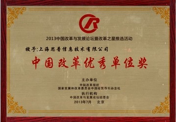 祝贺上海思普软件于2013年7月中国改革与发展论坛被授予“2013改革之星—中国改革优秀单位”,祝贺上海思普软件总经理应思红先生被授予“2013 改革之星—中国改革优秀人物”。本次入选充分体现了上海思普软件在企业管理创新信息化以及为推动中国企业改革转型所具备的实力和潜力。