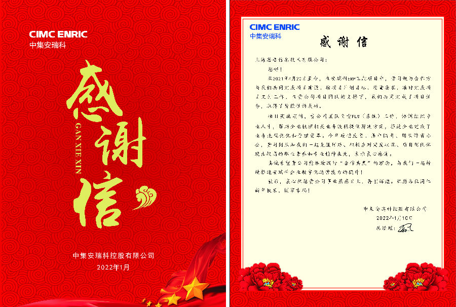 在新年即将来临之际,中集安瑞科发来感谢信,对上海思普信息技术有限公司做出的贡献表示感谢及肯定。