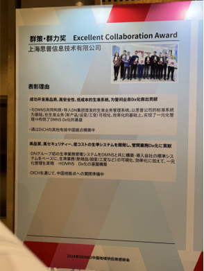2024年DENSO中国地域(简称DICH)供应商感谢会于2024年6月7日在上海扬子江丽笙酒店隆重召开,会上对电装中国地域的优秀供应商进行表彰,思普软件凭借“思普基础平台+DN个性化定制”完成的DMNS生准系统建设项目成果,荣获电装中国地域2023年优秀供应商群策群力奖。