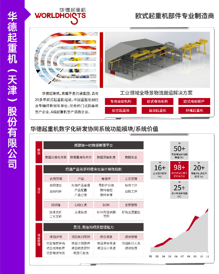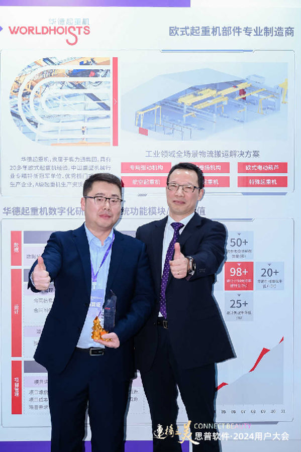 华德起重机是一家欧式起重机部件专业生产制造商,具有20多年欧式起重机经验。华德起重机利用思普SIPM/PLM来架构企业研发管理平台,通过思普iSIPM云强大的软件建模的能力,坚持长期自主改善PLM系统,实现了三维CAD和PLM参数联动,极大提高了订单处理能力,使企业研发团队不但能保质保量完成本公司自身的研发和订单设计,还能帮助一些没有设计能力的用户进行起重机整机的订单设计,并通过系统功能自主重构真正实现了从销售到研发到售后维护的产品全生命周期管理,成为SIPM/PLM自主改善持续优化的标杆客户。