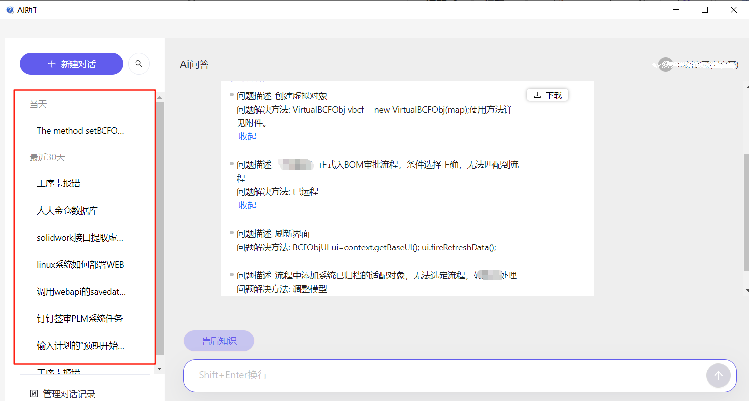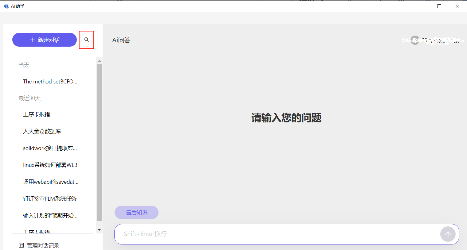 客户直接进入售后服务系统http://bestplm.com/app.jsp 界面,即可快捷方便的使用AI助手。