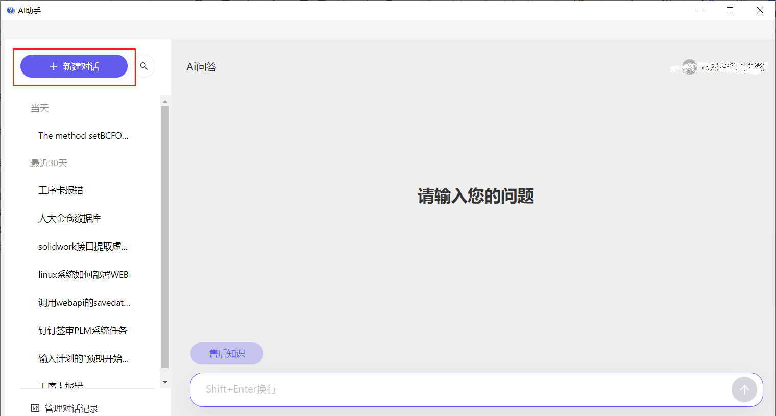 售后AI助手界面功能操作