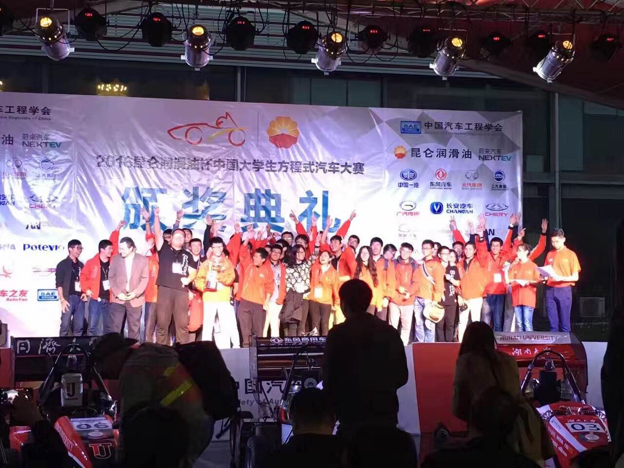 2016年10月15日下午六点三十分,湖南大学FSAE赛车队站上第七届中国大学生方程式汽车大赛的领奖台——“中国FSC”,捧起象征着荣耀和责任的奖杯。这一刻,在场来自72所高校的赛车团队和指导老师为他们欢呼。